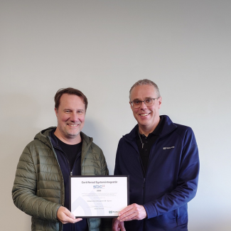 Bild: Dennis överlämnar certifieringsdiplomet till Teodor Lindgren på SGAM. Grattis SG Application & Management AB! Vi säger stort grattis till SG Application & Management AB på Gotland som har…