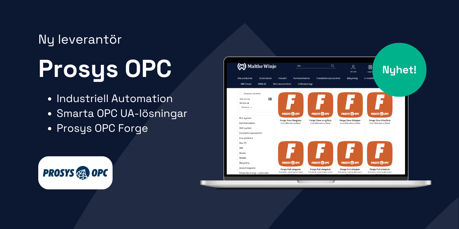 Prosys OPC Forge finns nu tillgänglig att köpa direkt via vår webbshop. Klicka här för att utforska våra produktnyheter i vårt sortiment från Prosys OPC.