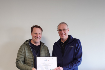 Bild: Dennis överlämnar certifieringsdiplomet till Teodor Lindgren på SGAM. Grattis SG Application & Management AB! Vi säger stort grattis till SG Application & Management AB på Gotland som har…